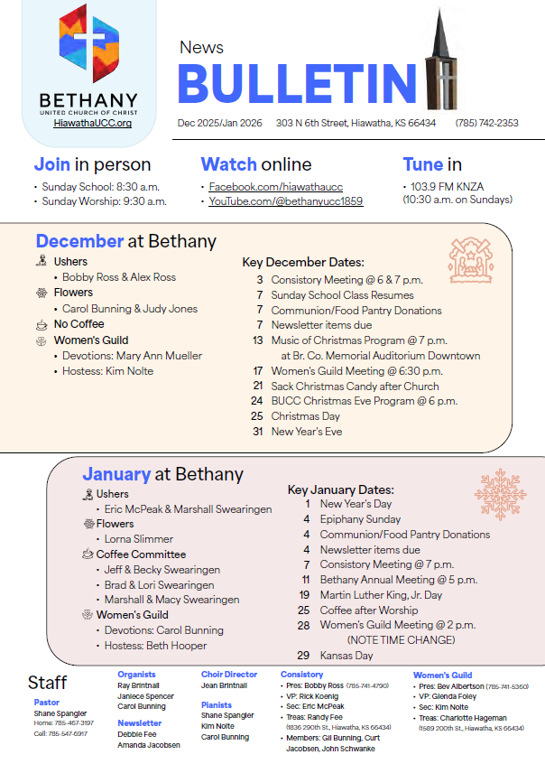 Bethany’s newsletters are now available online! Please click on the image for a the full version.